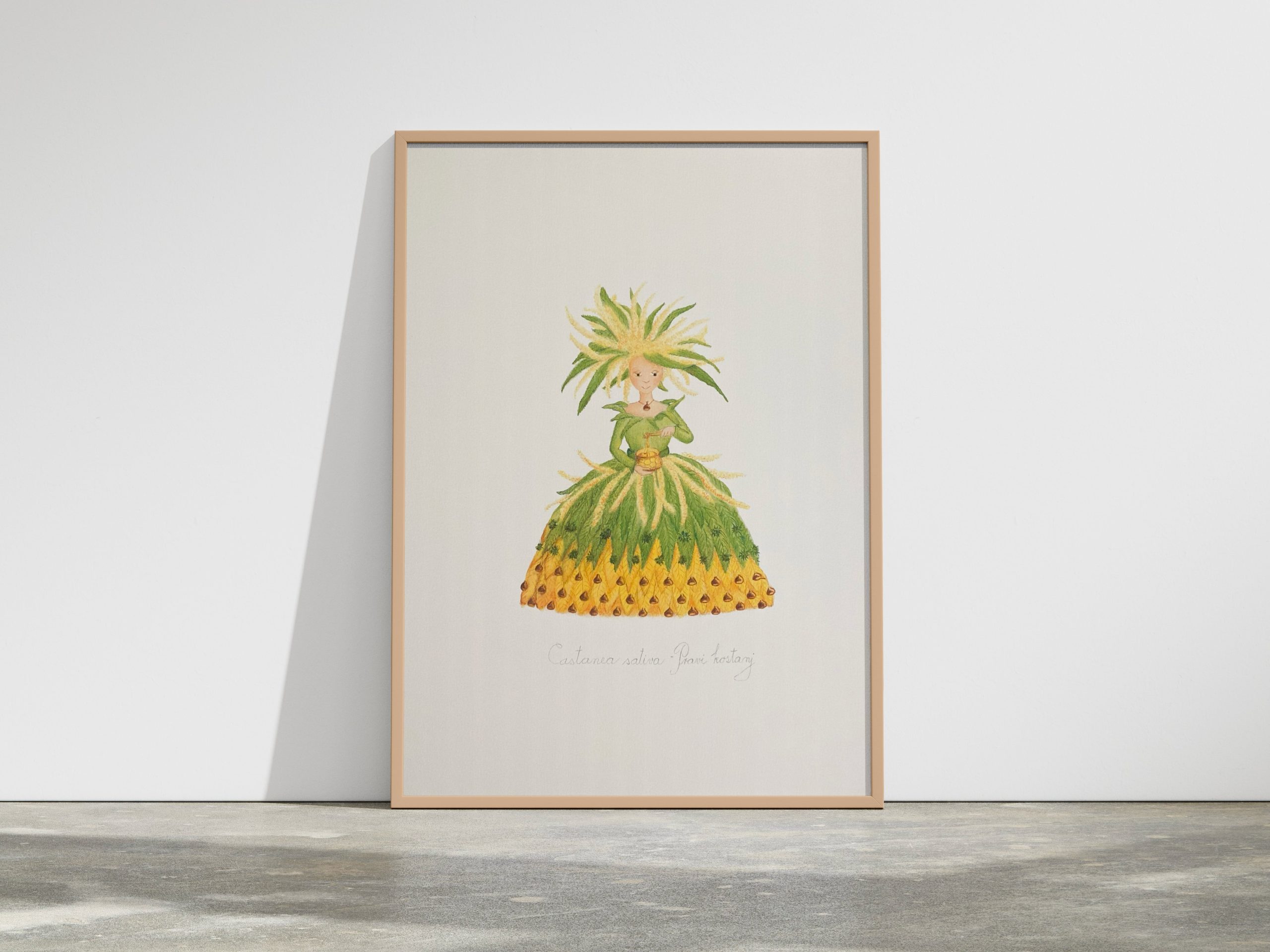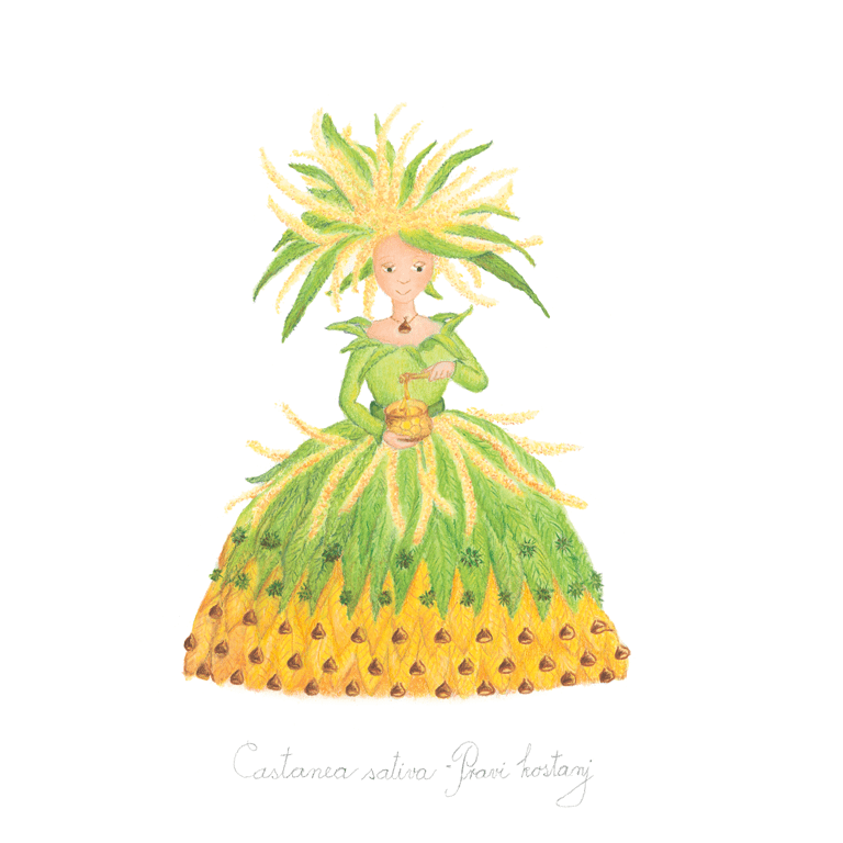 Ilustracija z motivom Pravi kostanj – Castanea sativa.